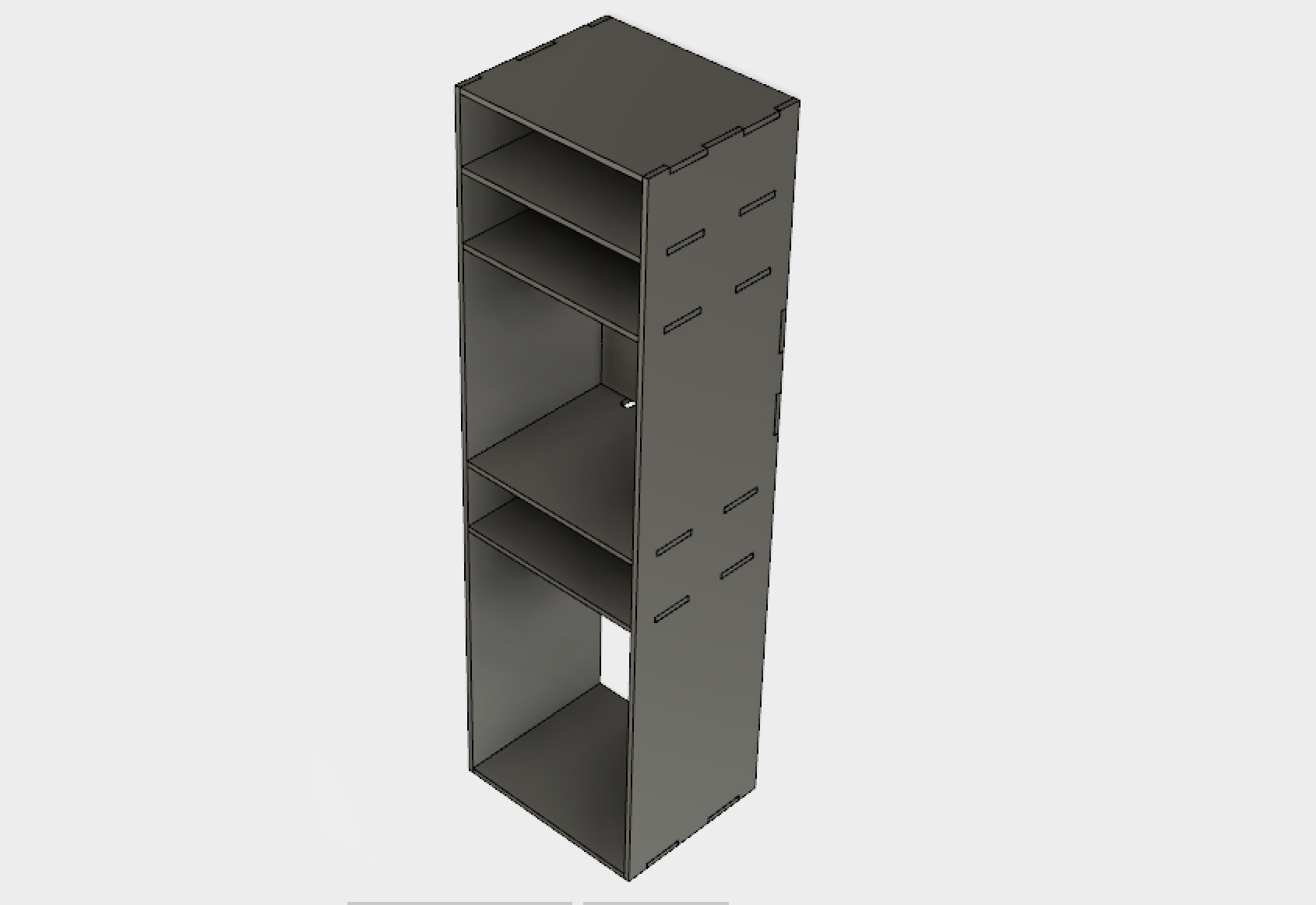 My work volunteering at Jacobs Hall offers me access to a 4x8 ShopBot router, which is fantastic for cutting plywood. I knew I’d be purchasing the plywood through Jacobs, but hadn’t picked out a sheet prior and therefore didn’t know the final thickness. Since I intended on using some close-fit joints from the start, the sheet thickness was important, so I included it as a parameter in Fusion360 as I worked on the model, along with some others that I could quickly adjust on the fly.