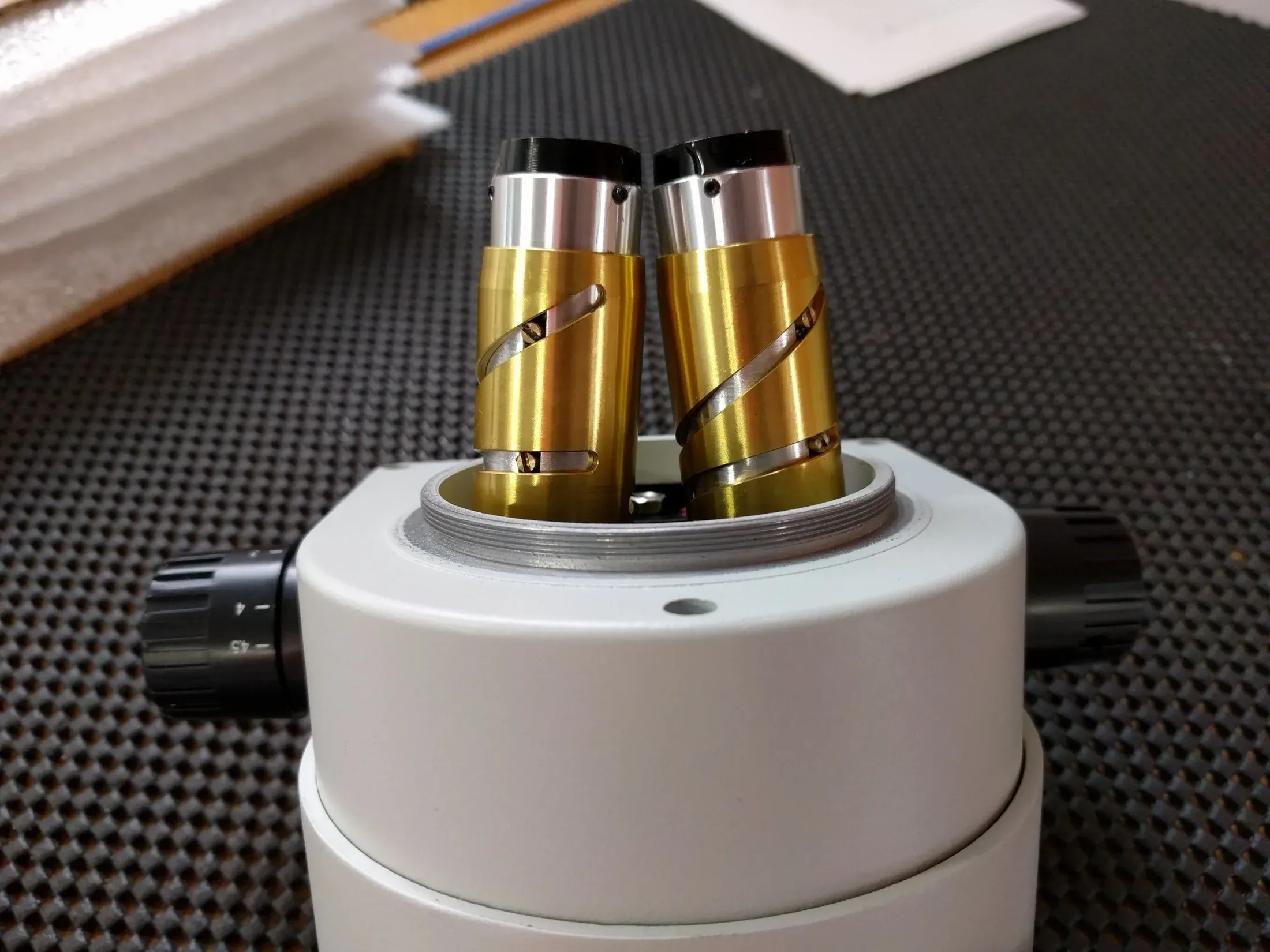 At work, we use this microscope for inspection. Overall, it’s fantastic, although photographing what you see through the eyepiece is extremely challenging without an attached camera. Removing the main viewing assembly was the best way to decide if we could build an adapter ourselves, but it also revealed these glorious barrel cams: